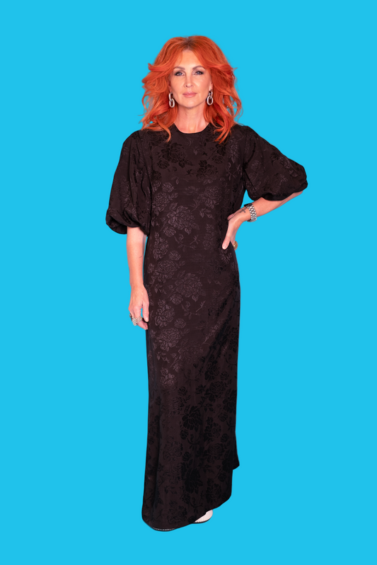 Kimono Sleeve Dress in Black Rosa Jacquard