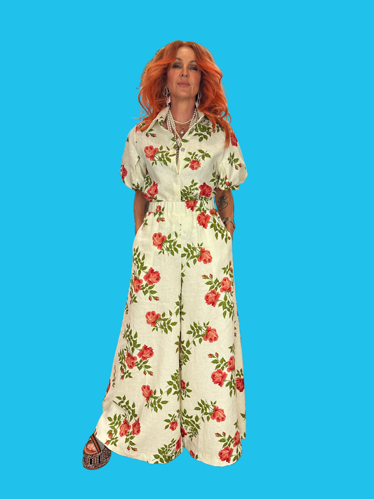 Italian Glitterati Wool Culottes in Rose Gold Lurex