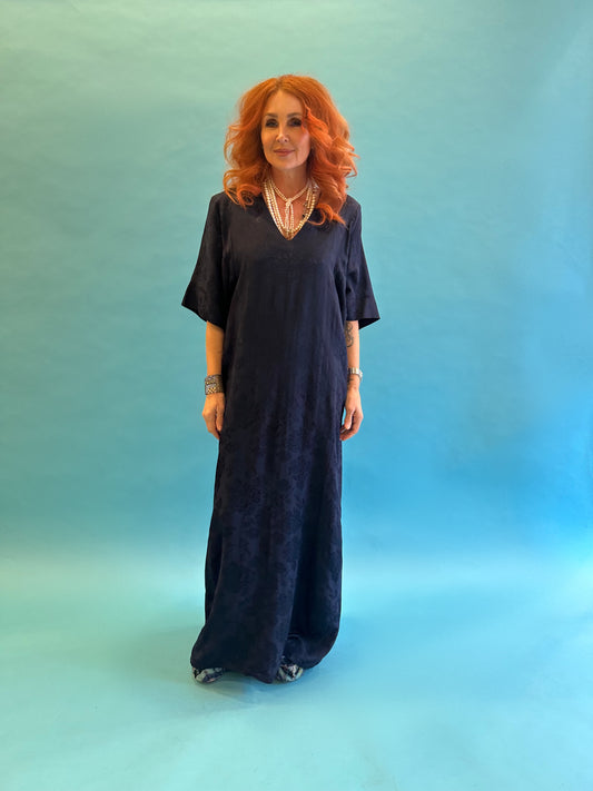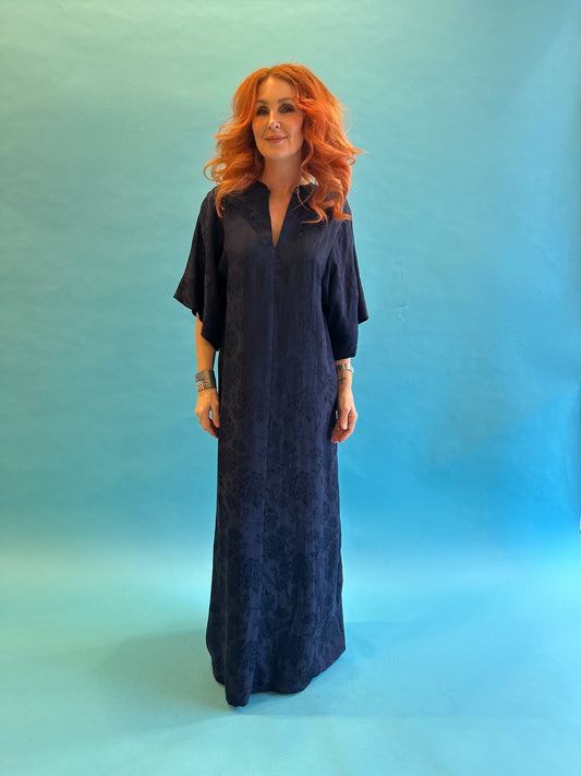 Kimono Sleeve Dress in French Navy Rosa Jacquard