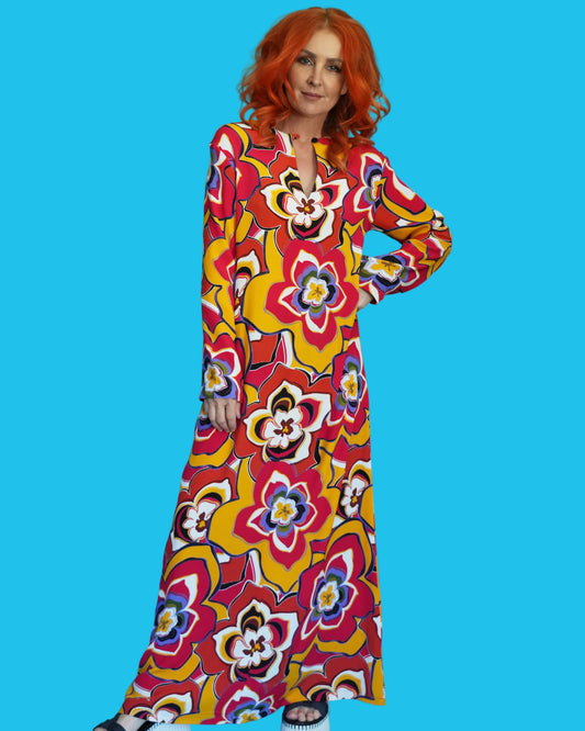 Column Dress in Palm Royale Cherry Red LAST ONE