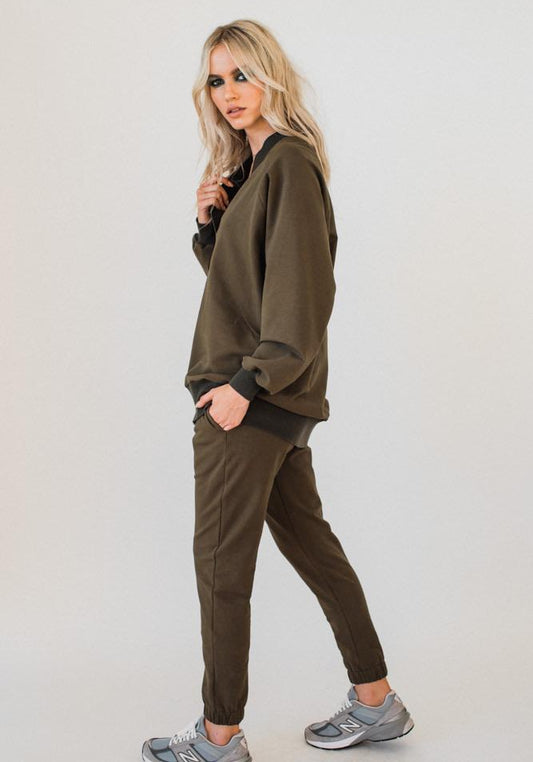 Wide Leg Pant in Khaki Bouclé LAST ONE