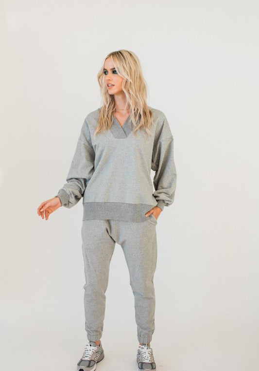 Olympia V-neck Sweat Top Grey Marle