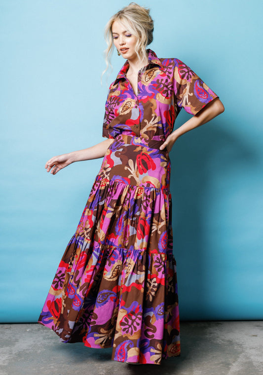 Classic Sleeveless Shirt in Chocolate Rosa Jacquard