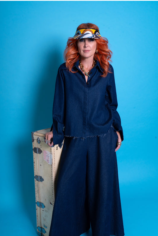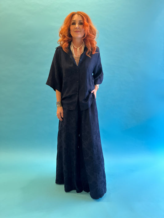 Classic Shirt in French Navy Rosa Jacquard LAST ONE