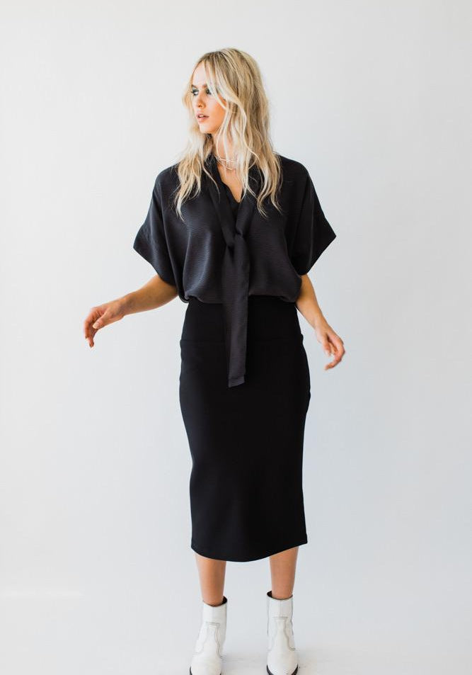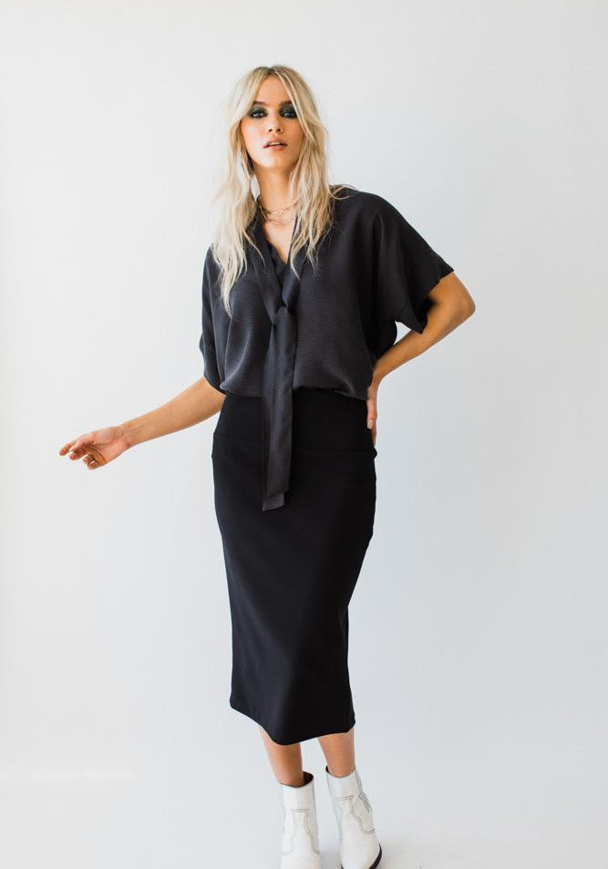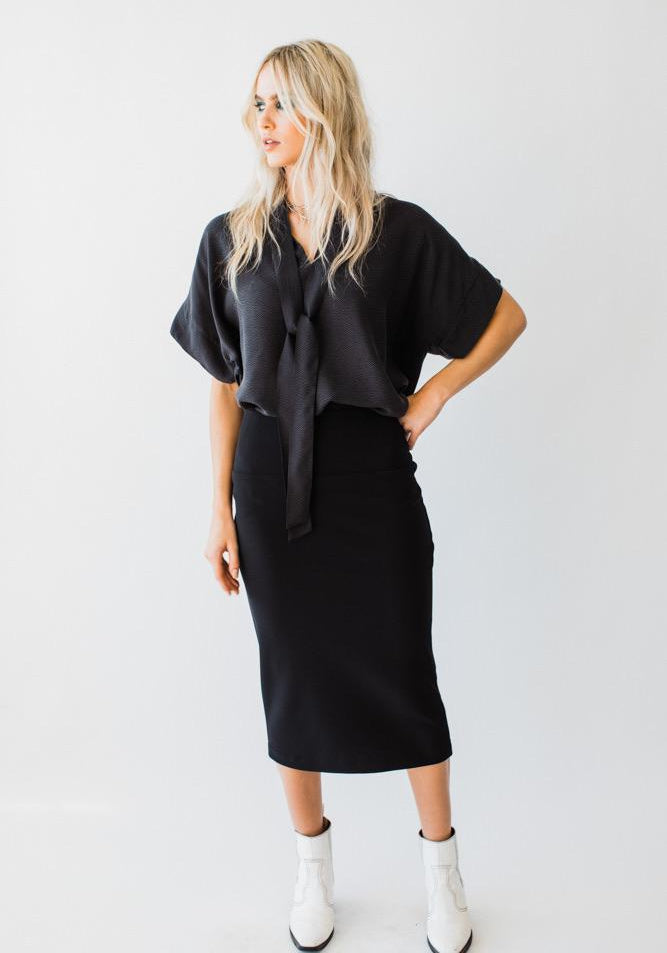 Our Pencil Skirt looks fab paired with the Pussybow Pullover and Blouse, or an oversized tee... A slimline look that creates a beautiful silhouette. This skirt can take you from day to night!