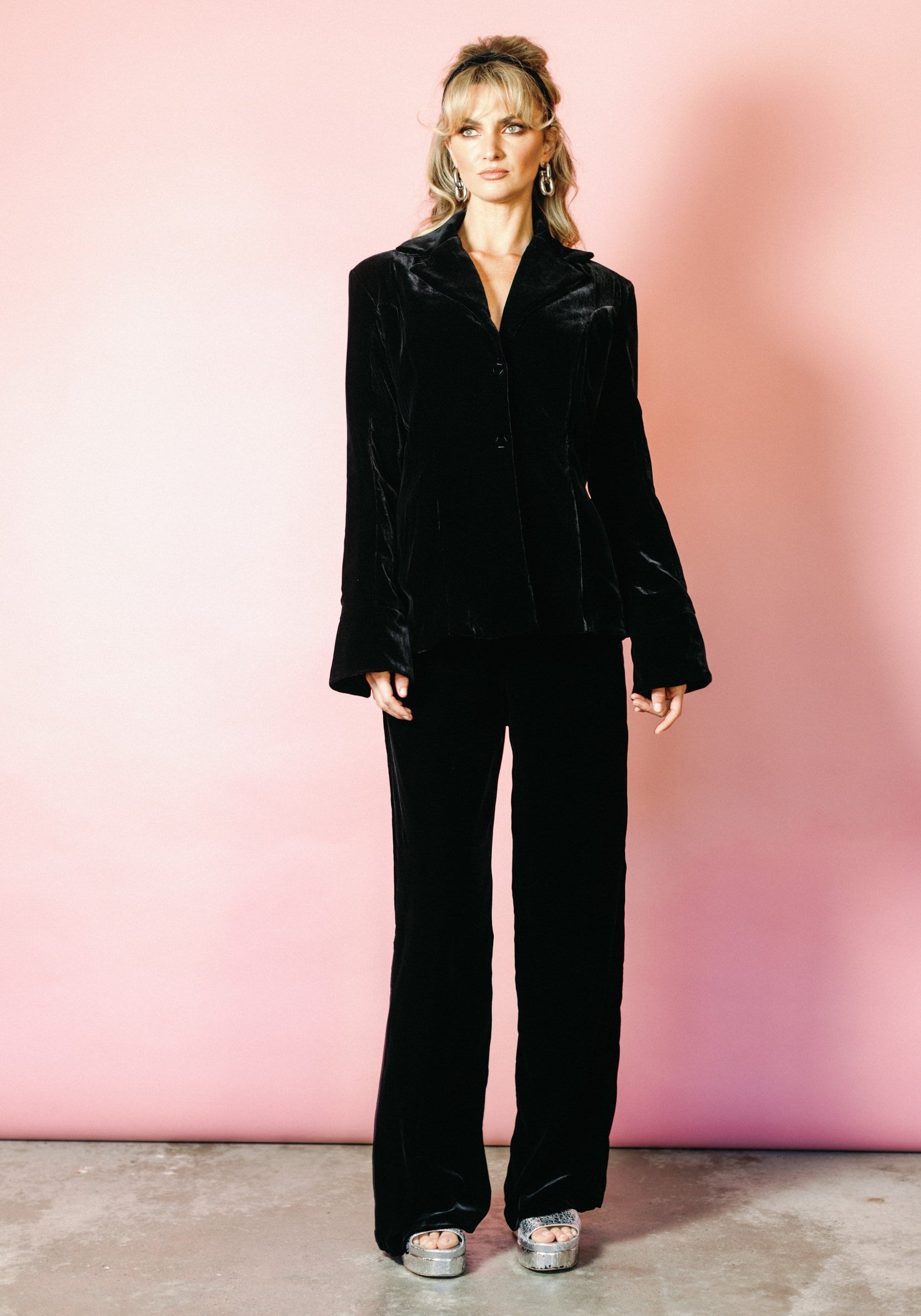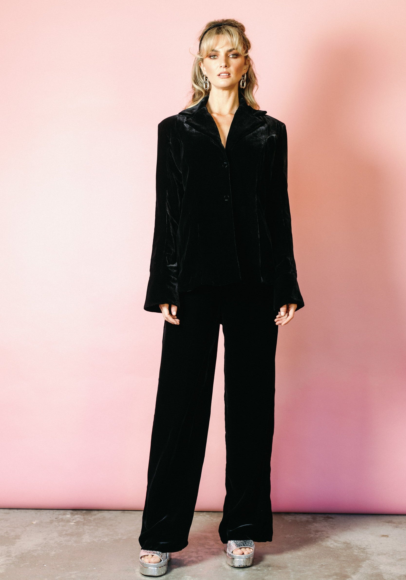The Classic Pant in Black Silk Velvet is a pull on, slim-line pant with pockets. A relaxed, easy fit relaxed leg pant with a cased elastic waistband, these pants will elevate any look.