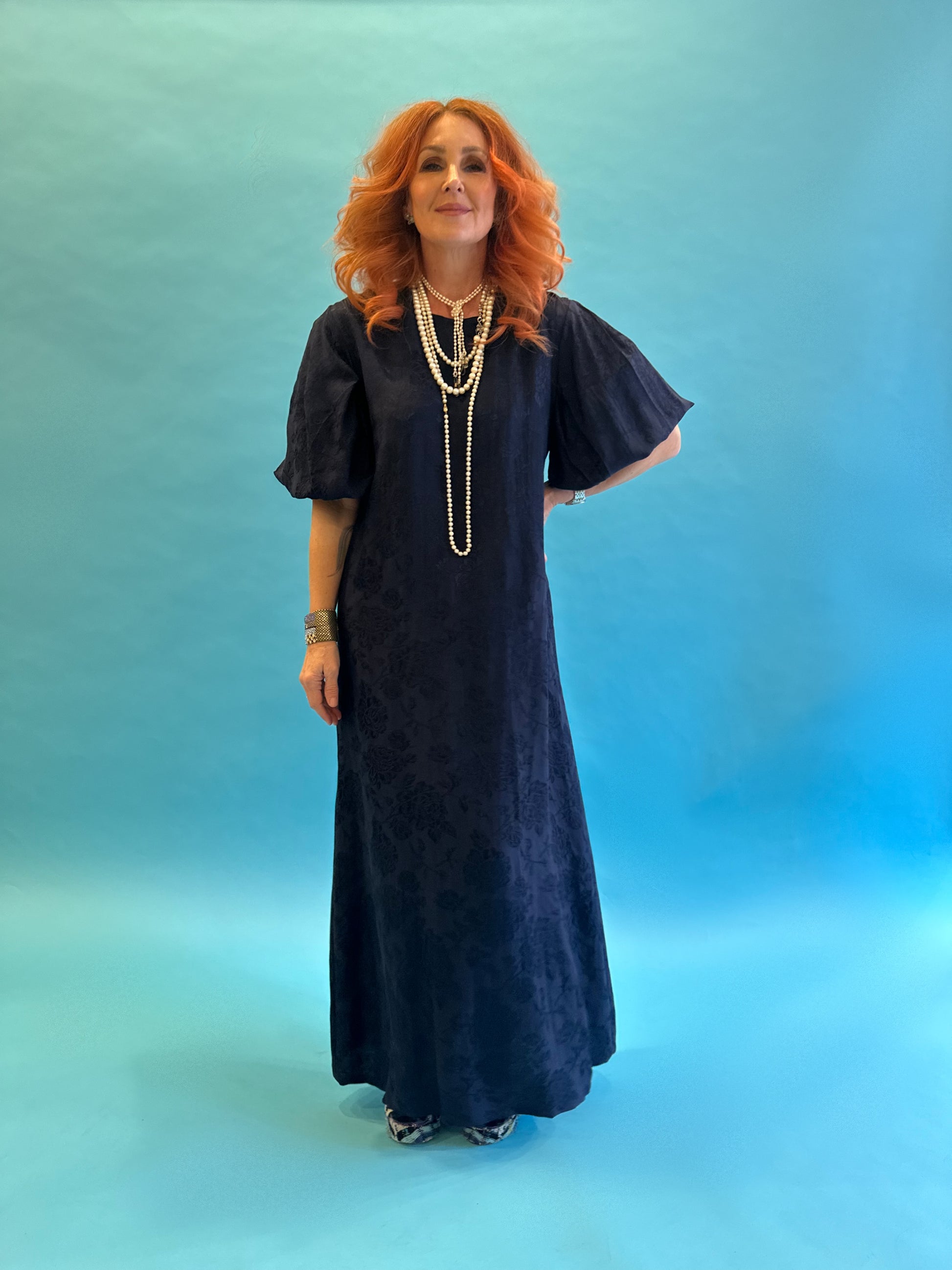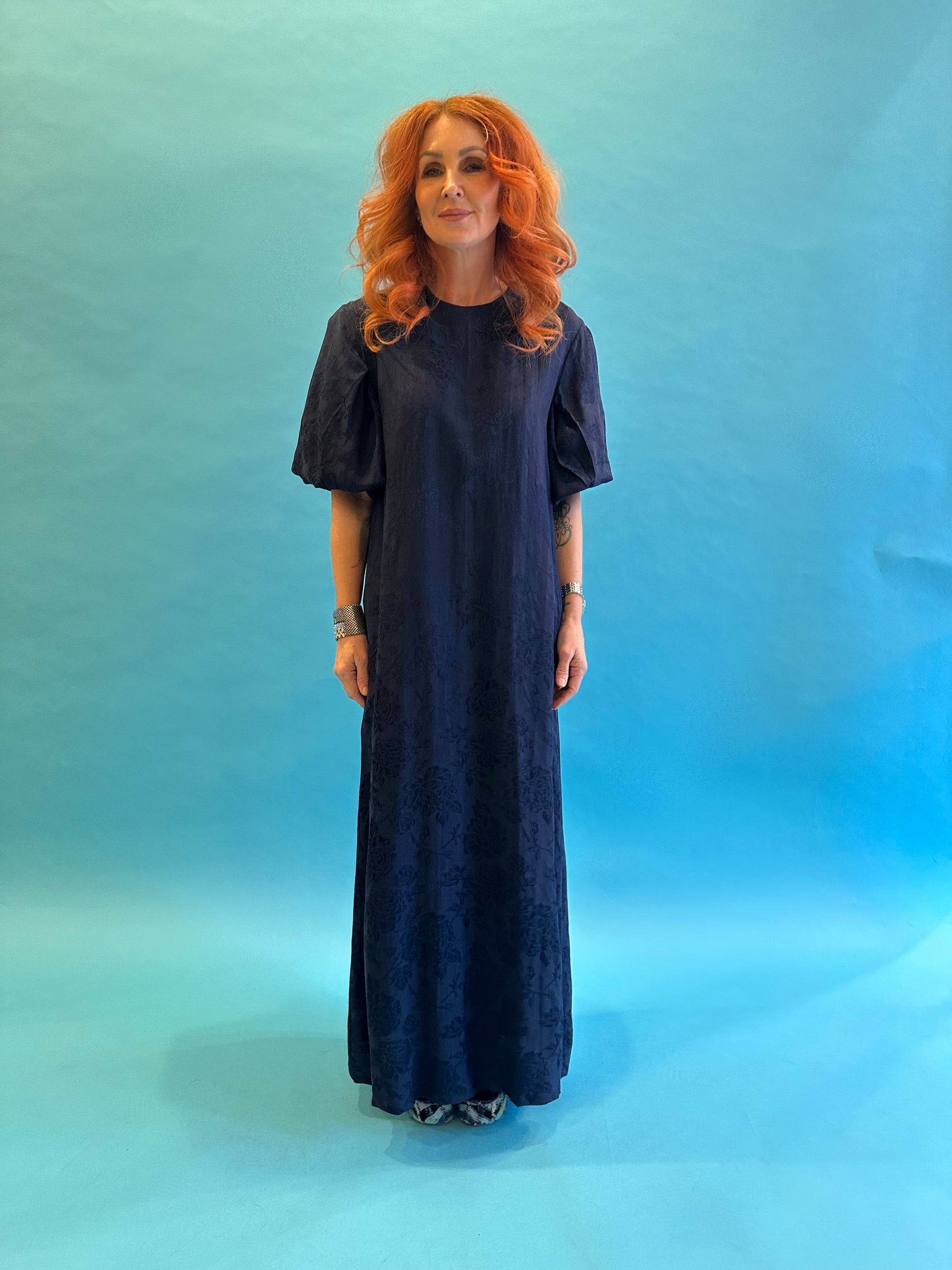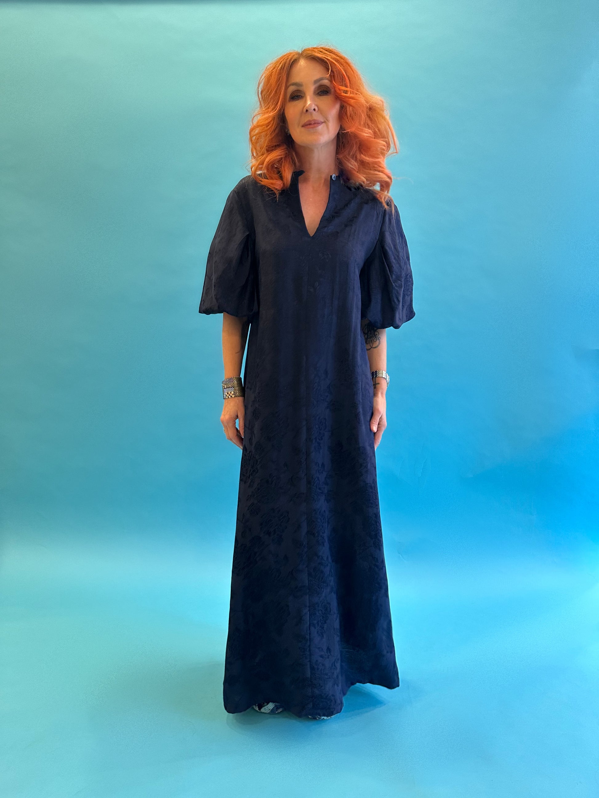 Dolly Dress in French Navy Rosa Jacquard LAST ONE