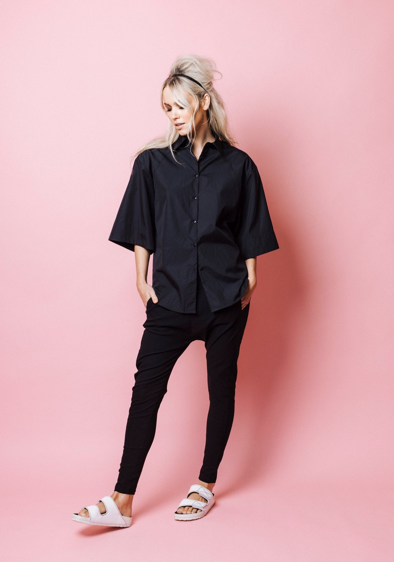 We’ve taken this one from the boys. A relaxed fit button down men’s style short sleeve shirt featuring cuff details. Our Cuffed Shirt can be worn with sleeves loose or rolled up for a cool summer look. This 100% cotton poplin has been carefully selected for its beautiful drape and handle. Pair yours with a pair of our new Denim Trainers or Flares for a cool street style vibe.