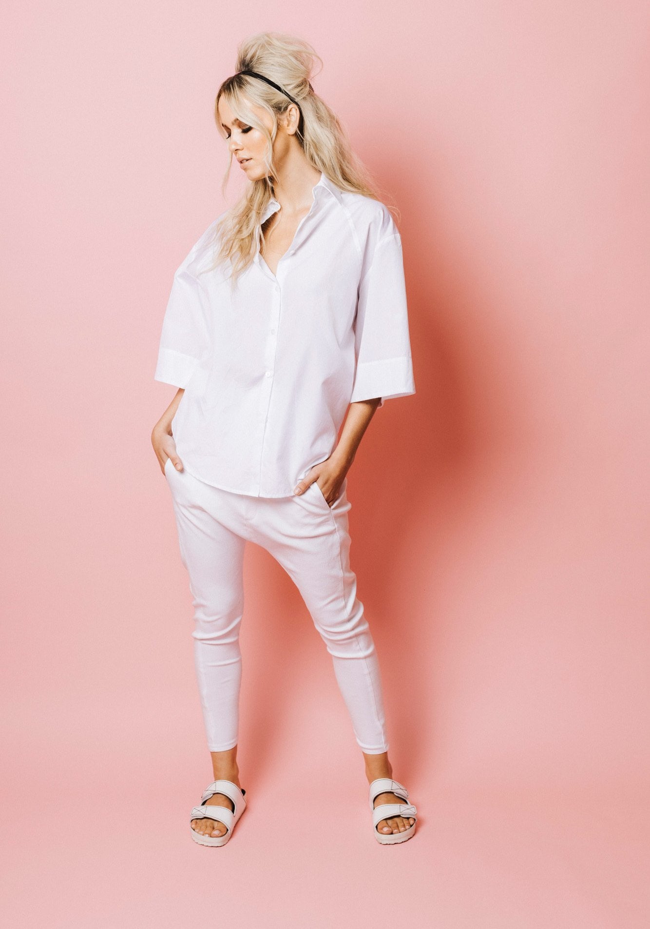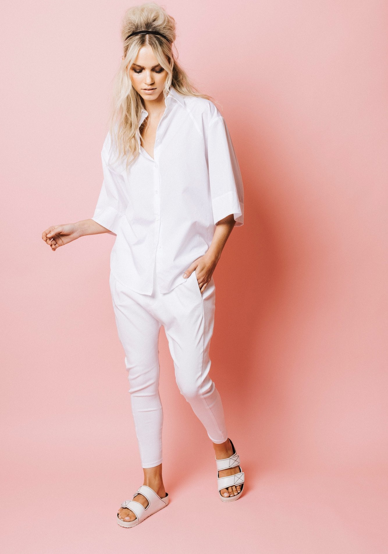 We’ve taken this one from the boys. A relaxed fit button down men’s style short sleeve shirt featuring cuff details. Our Cuffed Shirt can be worn with sleeves loose or rolled up for a cool summer look. This 100% cotton poplin has been carefully selected for its beautiful drape and handle. Pair yours with a pair of our new Denim Trainers or Flares for a cool street style vibe.