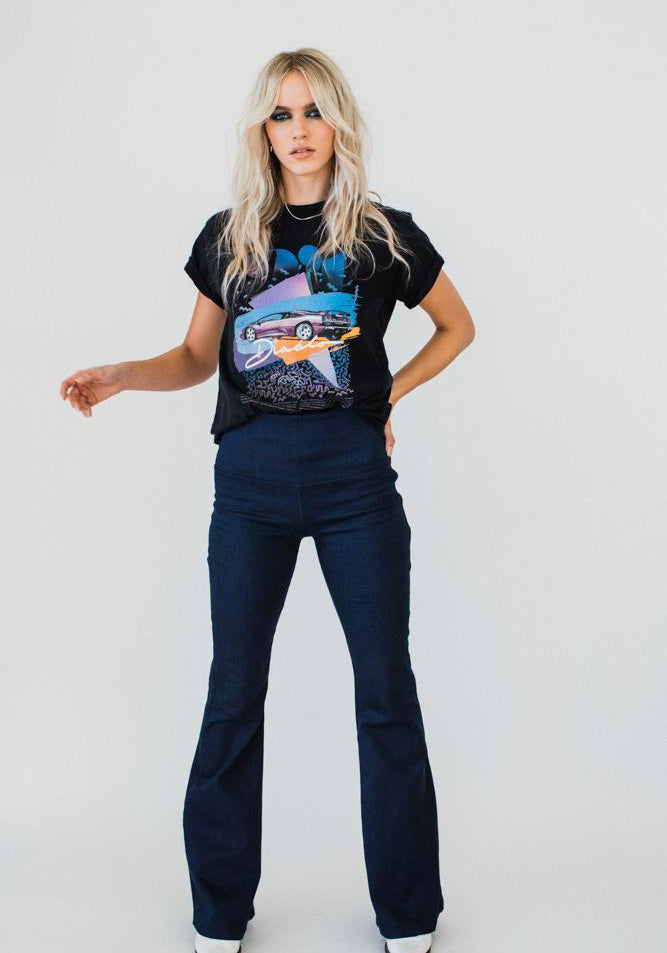 This flattering pull-on stretch pant with side zip detail features our signature wide waistband to flatten and support your tummy. The long line, flared style leg makes you feel slim and controlled through the hips and down the legs. These babies are the perfect partner for oversized tees and sweat tops... A slimline look that creates a beautiful silhouette. They are super soft with good stretch and incredibly comfortable to wear, pre washed for that extra worn in look. We guarantee you'll live in these.