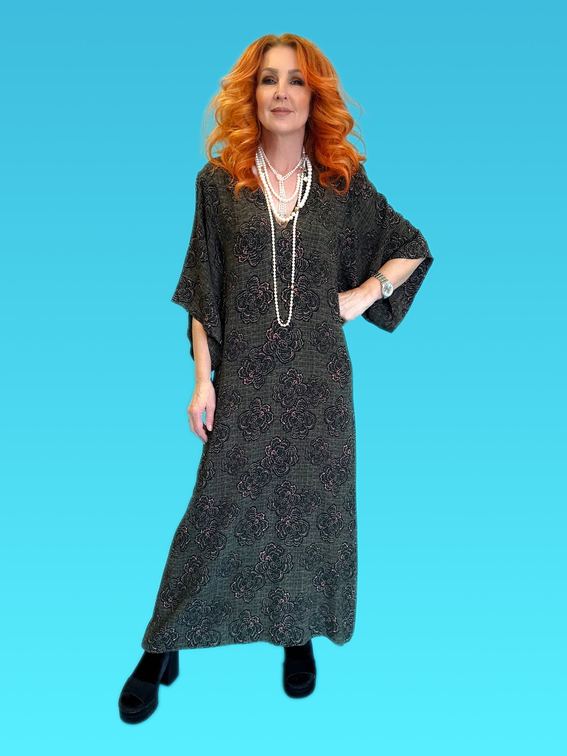 The House Dress is a relaxed easy fit midaxi length dress that features a V neckline and beautiful kimono sleeves.