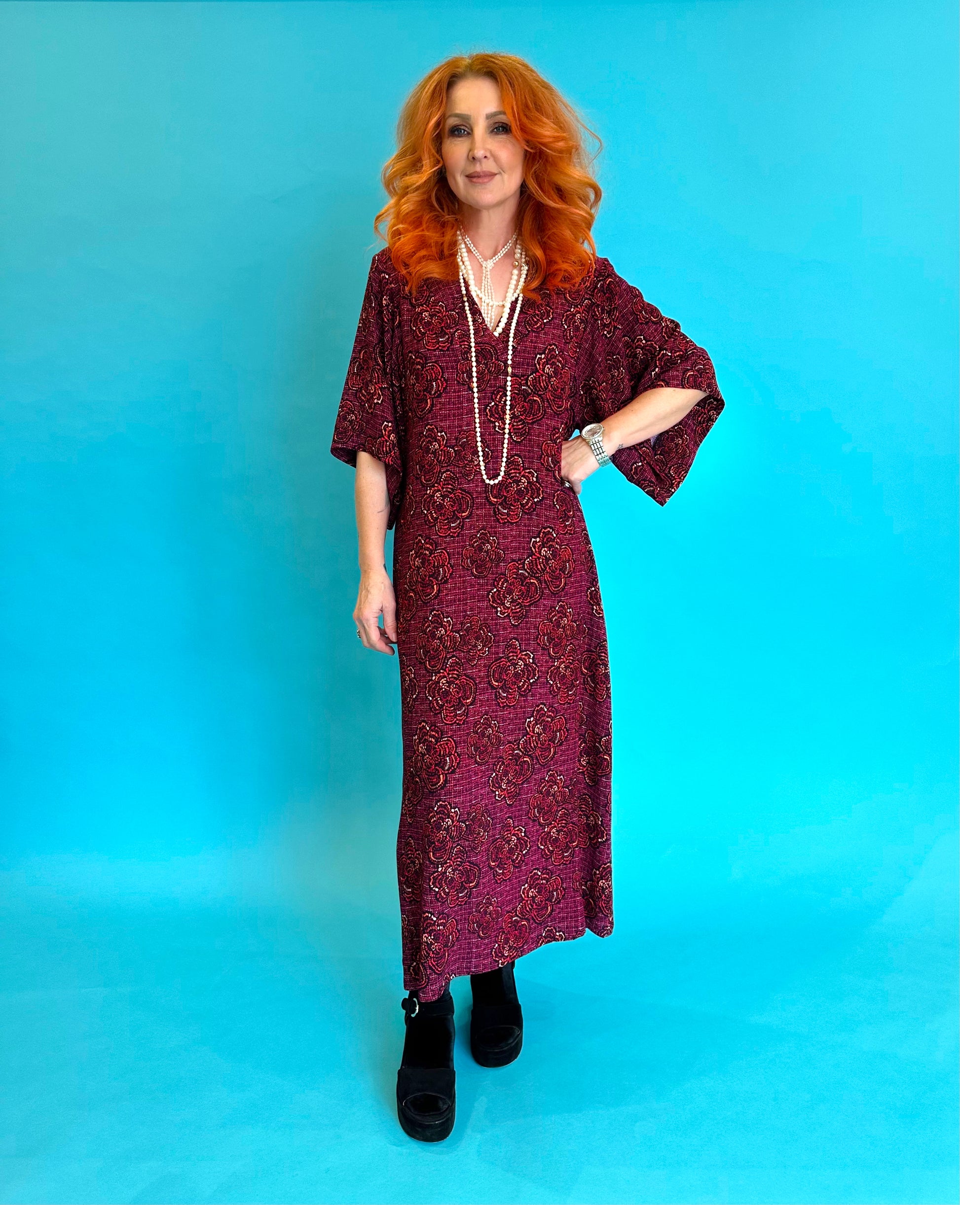 The House Dress is a relaxed easy fit midaxi length dress that features a V neckline and beautiful kimono sleeves.