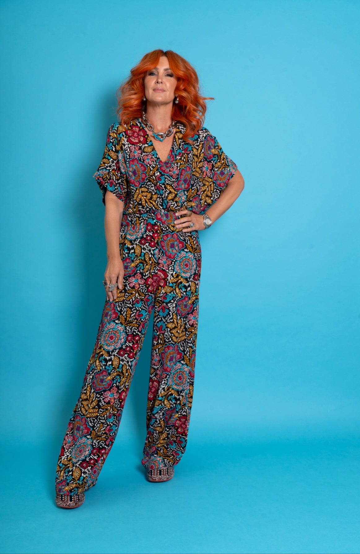 The Luxe Jumpsuit is also available in our Hibiscus Floral and Gold Zebra print.