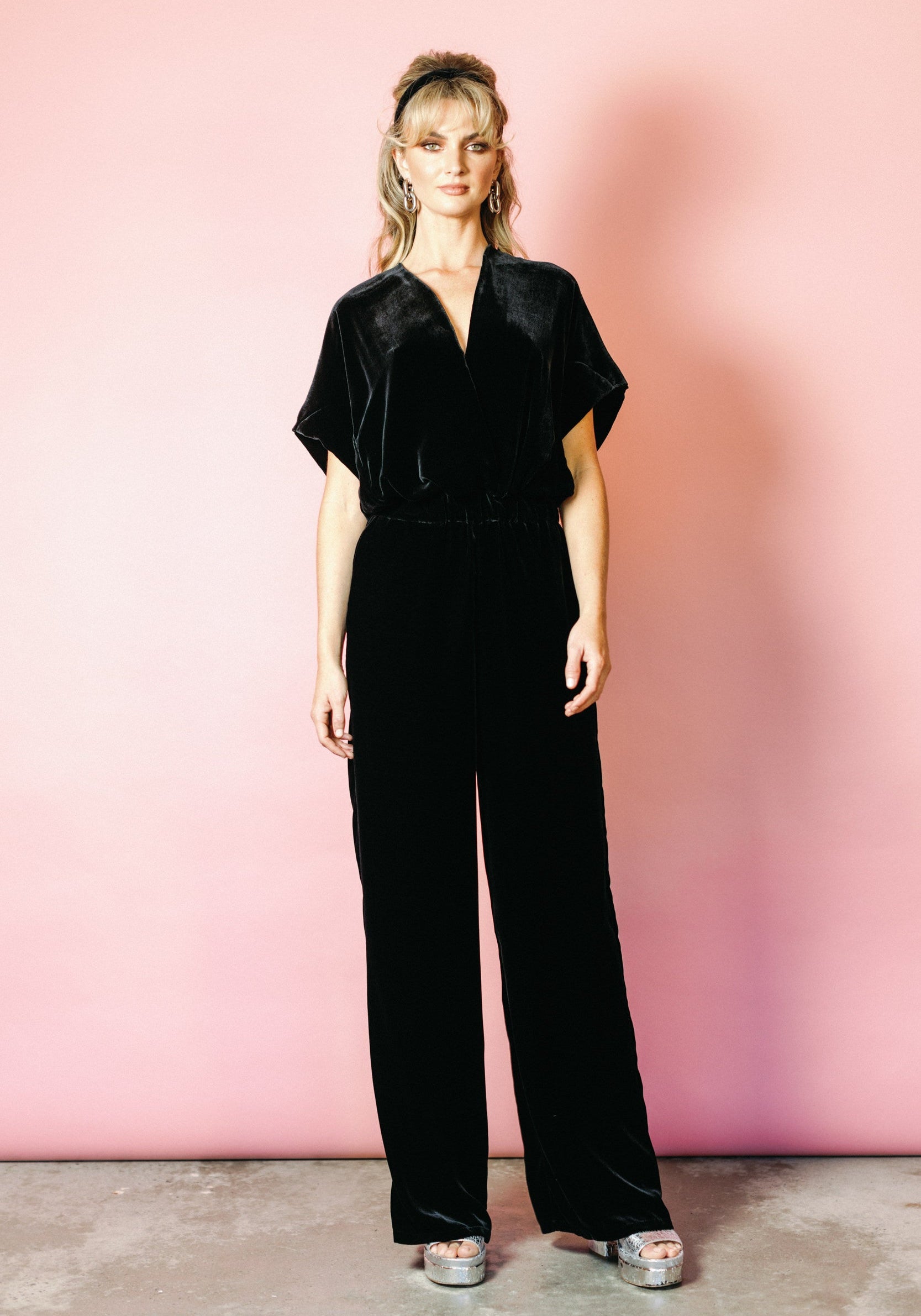 The Luxe Jumpsuit is cut from luxuriant Black Silk Velvet. This relaxed, easy fit jumpsuit features a cross over bodice with short sleeves, elasticized waistband and a relaxed straight leg pant. This 70s inspired jumpsuit will keep you feeling slim, sexy and effortlessly cool.