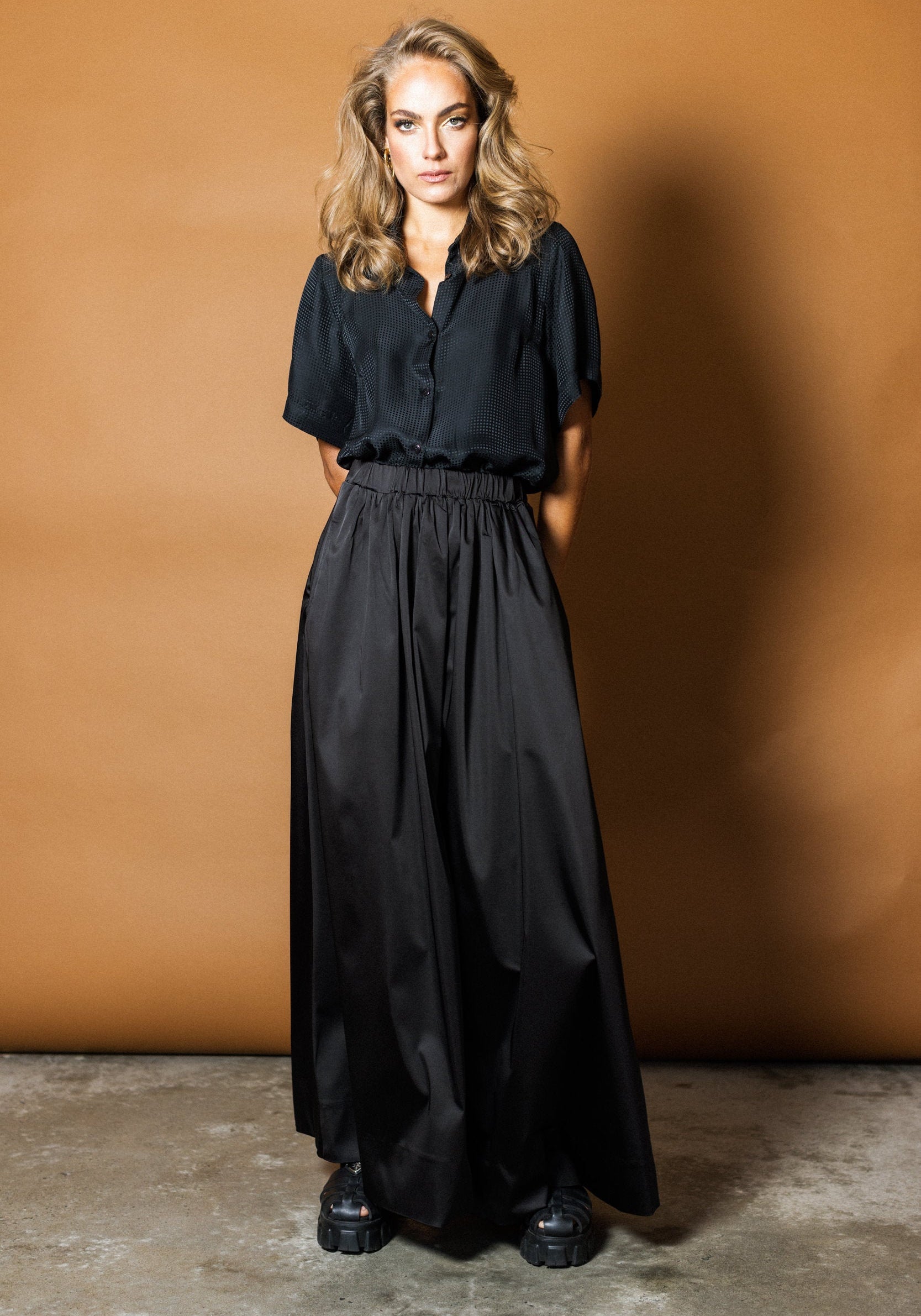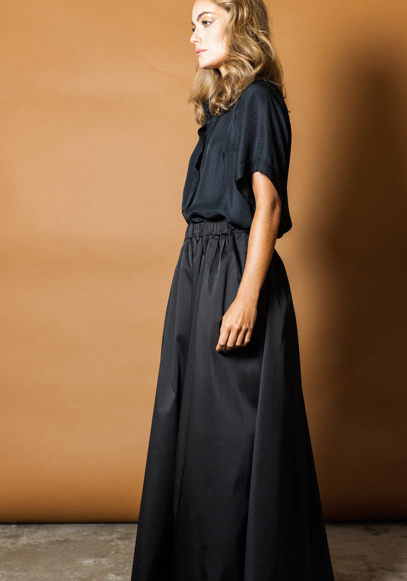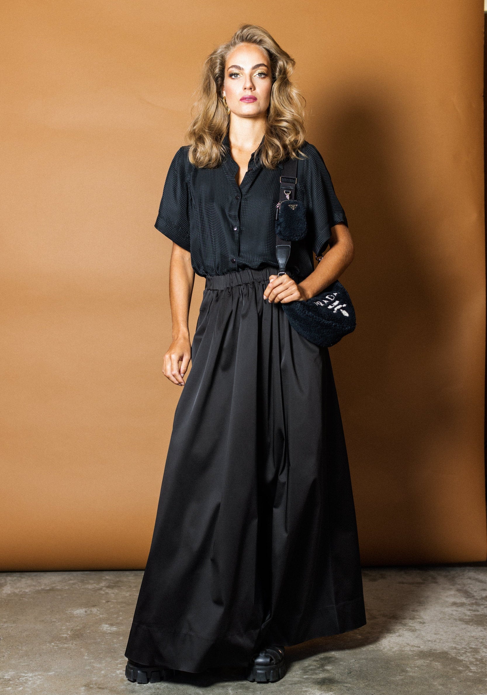 An Empire Rose classic... the Luxe Full Skirt is back! The Luxe Skirt in Black is made from a high-gloss satin feel luxe fabric. This pull on full length style skirt is an easy-fit, easy wear. Featuring an elasticised waistband for comfort and side pockets... the Luxe Skirt is both luxurious and versatile.