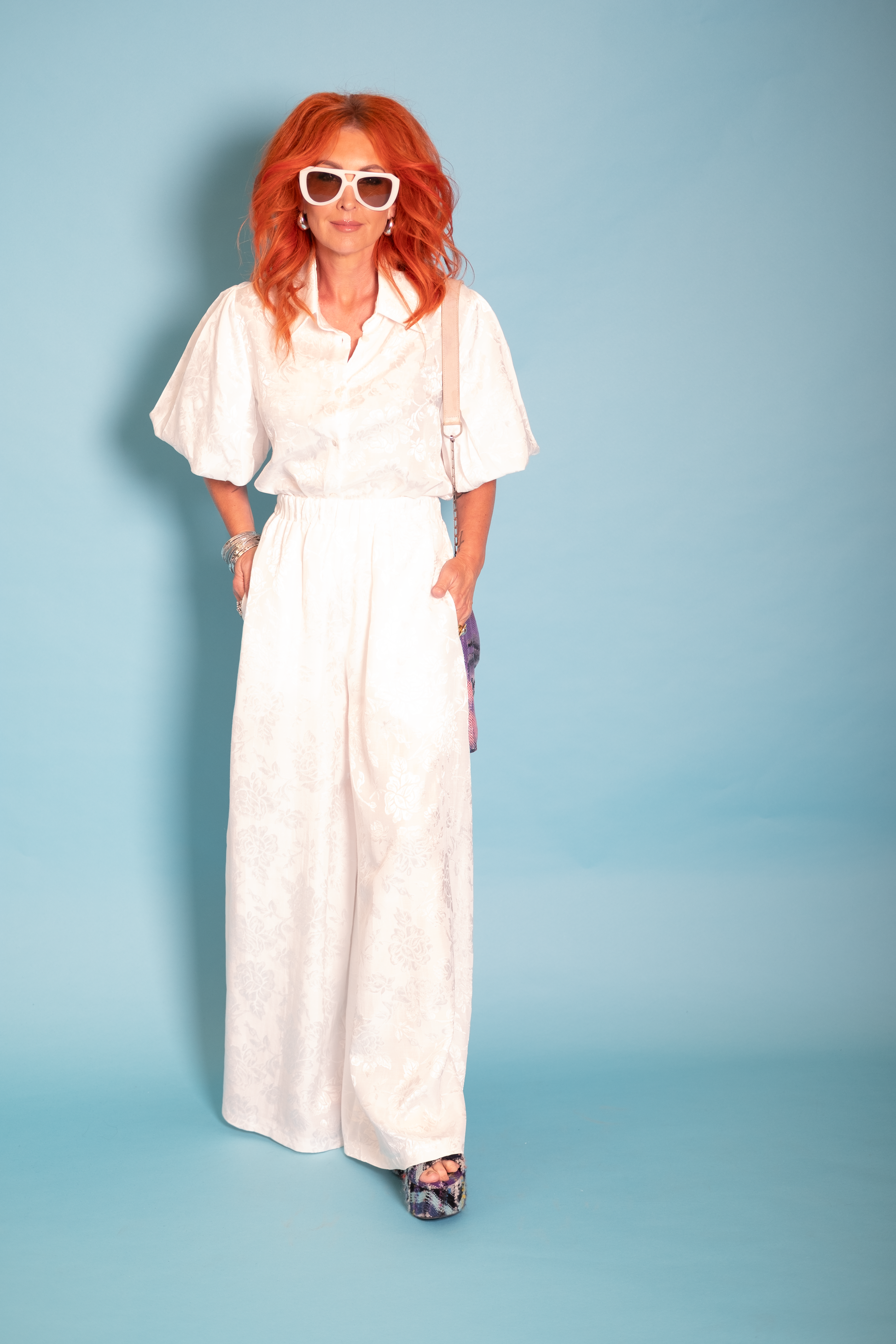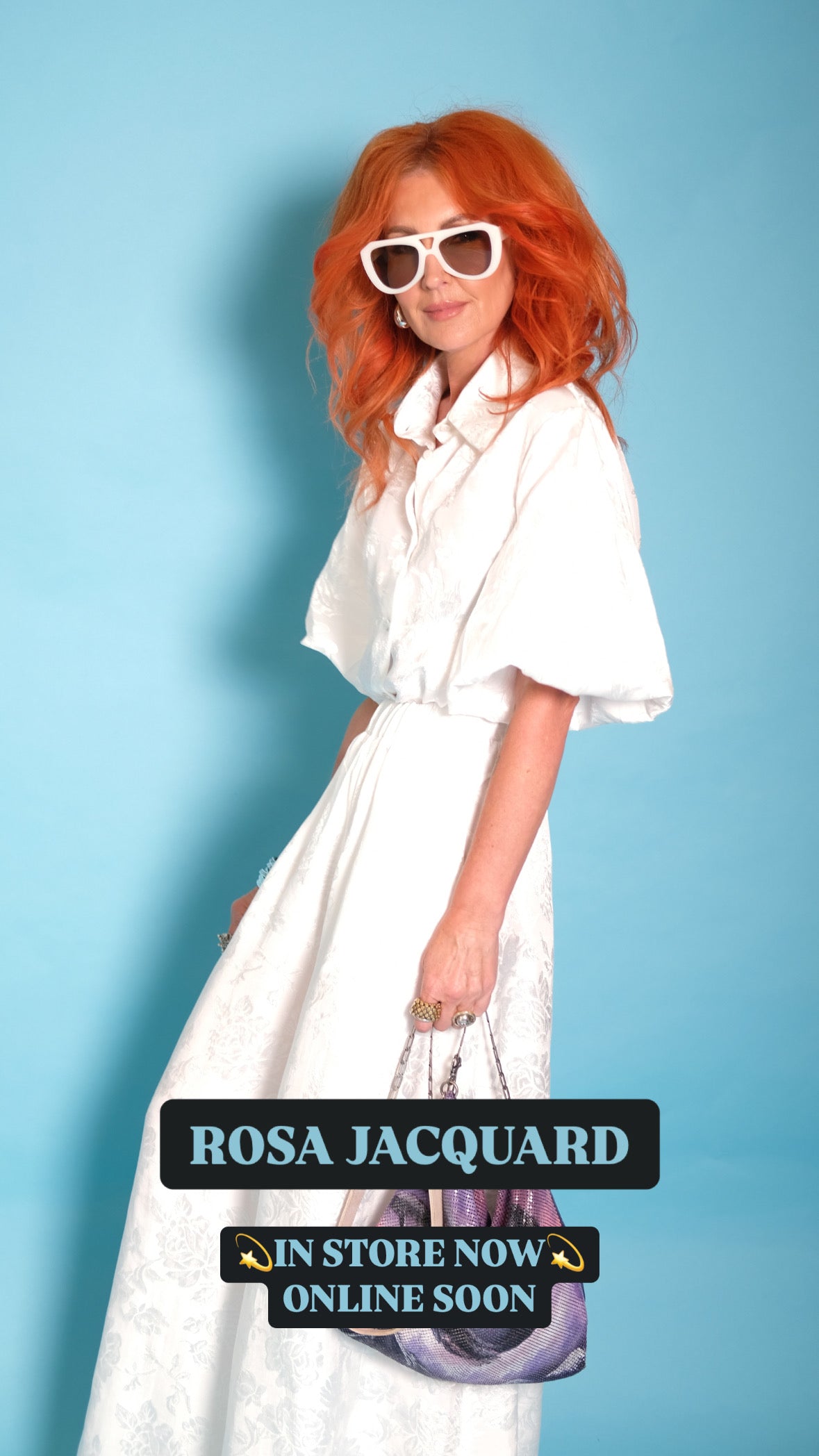 Dolly Shirt in White Rosa Jacquard