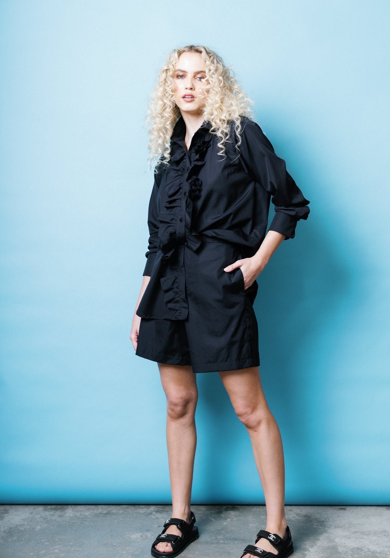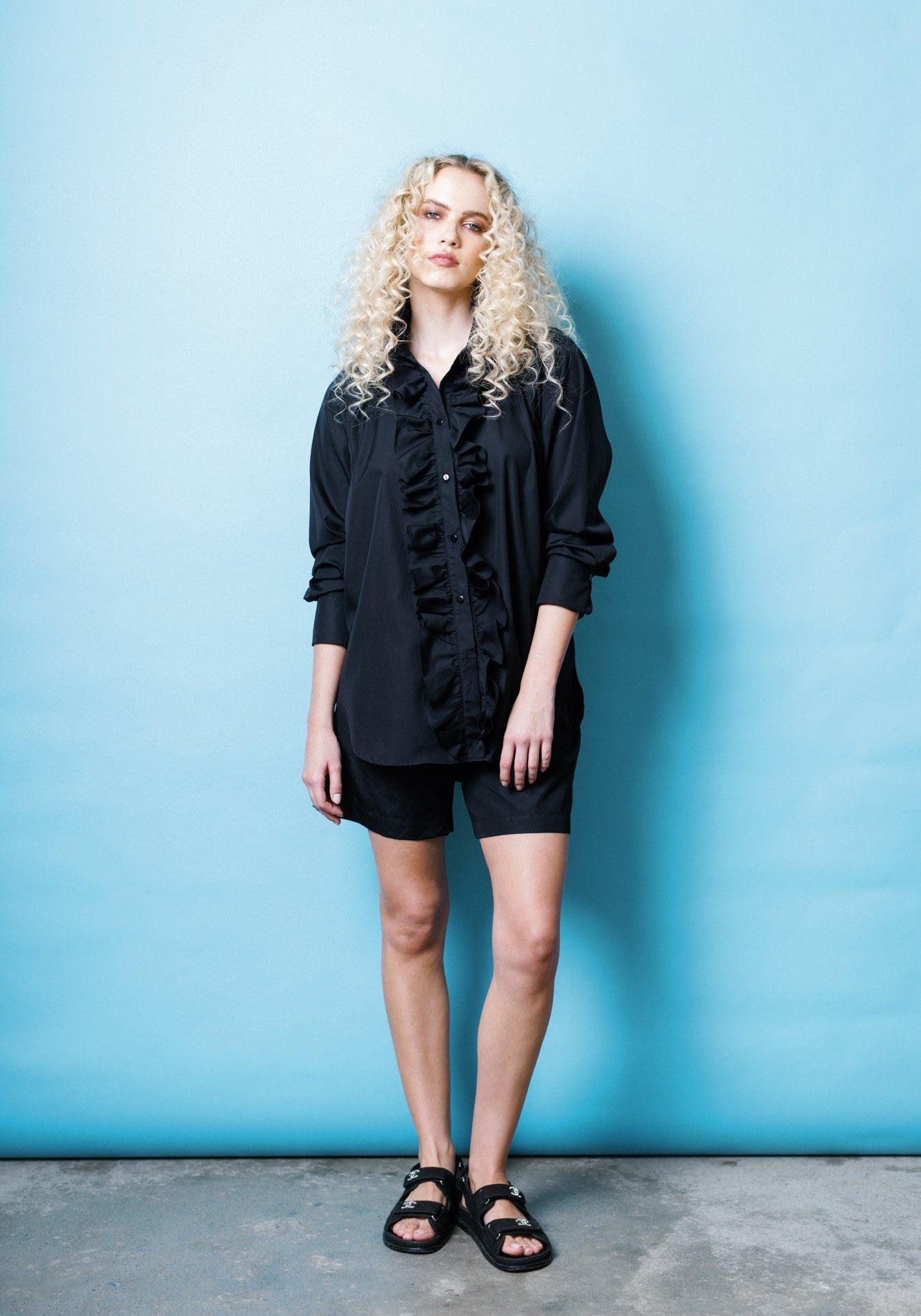 The Ruffle Shirt is a relaxed fit, button-down, long sleeve shirt featuring a ruffle front and cuff detail. Crafted from a high quality Japanese cotton.