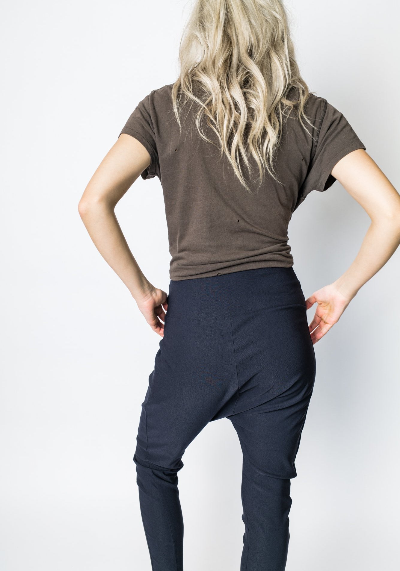 The Twill Highrise Cropped Pant is a relaxed fit, pull-on stretch pant. Our Cropped Pants are the exact same fit as our original Highrise Trainers, however they have been cropped to the ‘new look’ ankle length for an instant update. This pant features a drop crotch that tapers into a slim leg, faux fly and side pocket detail.