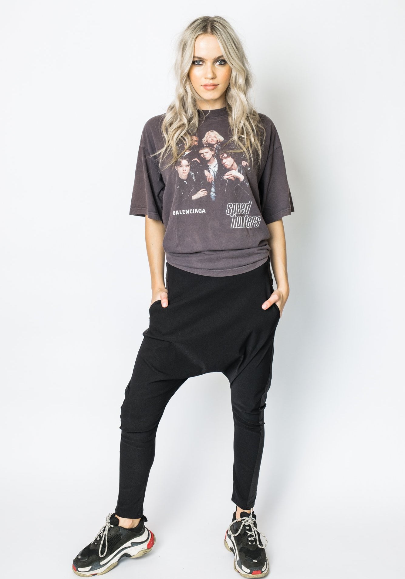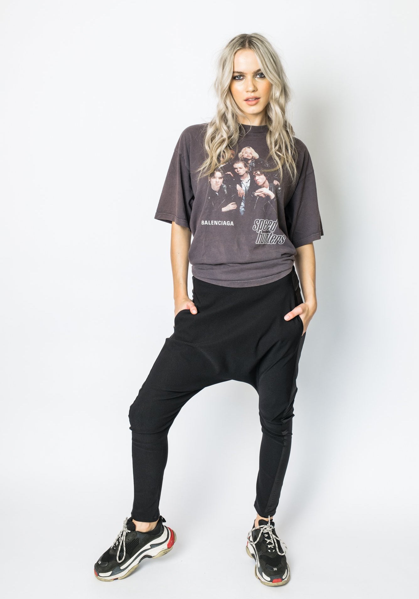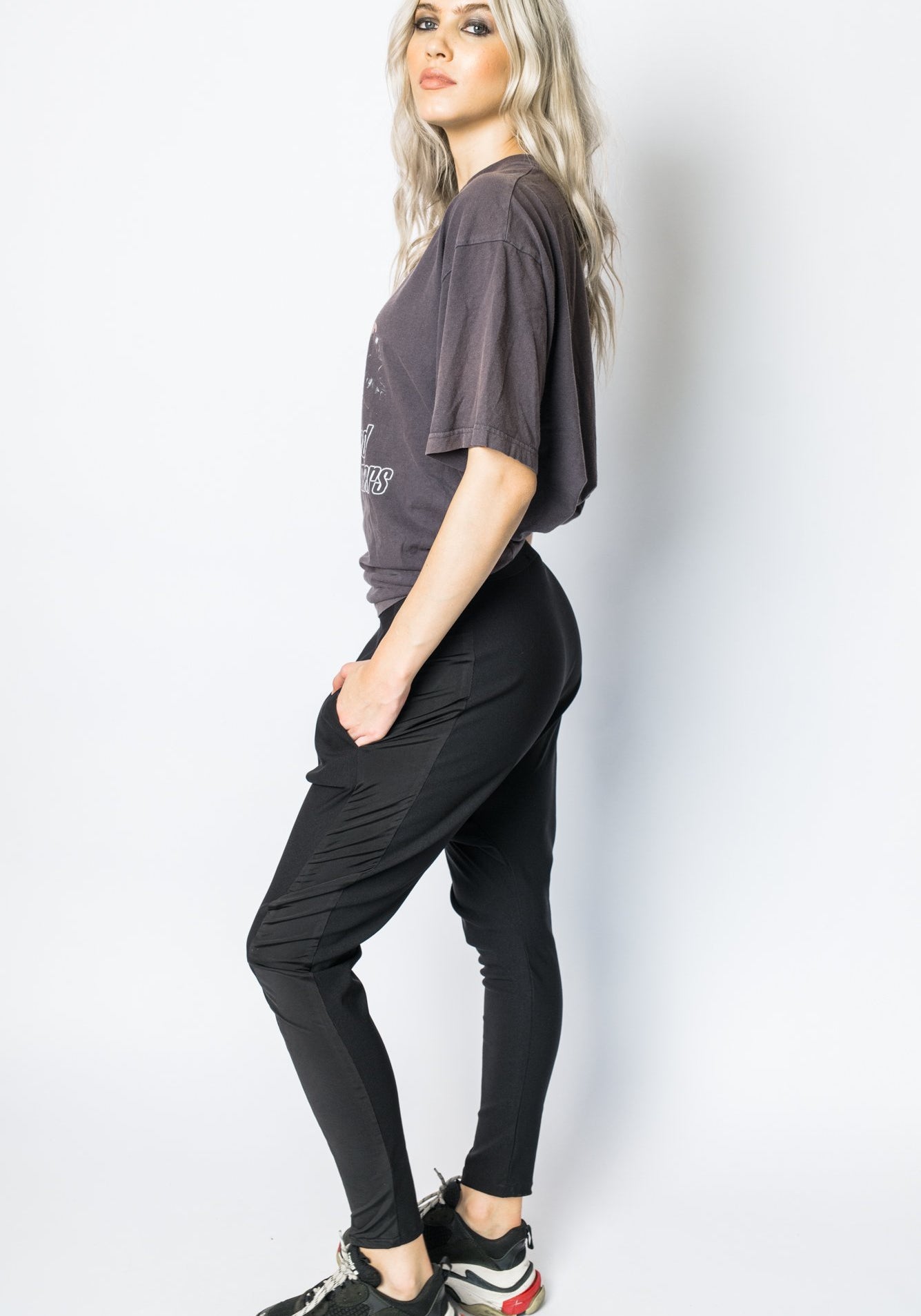 The Twill Luxe Loose Pant is an easy fit, pull on pant. This relaxed style features a drop crotch that tapers into a slim lower leg, side panels in a contrast stretch fabric, an Italian elastic waistband and side pockets.