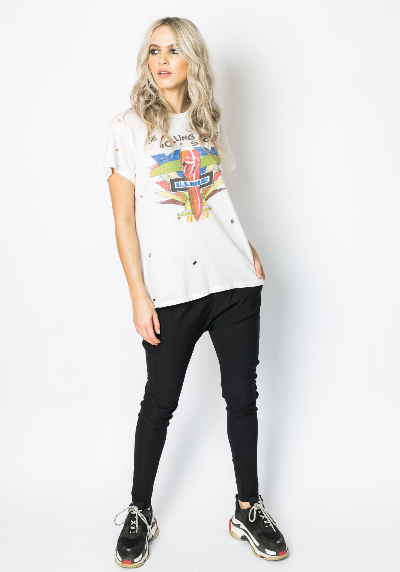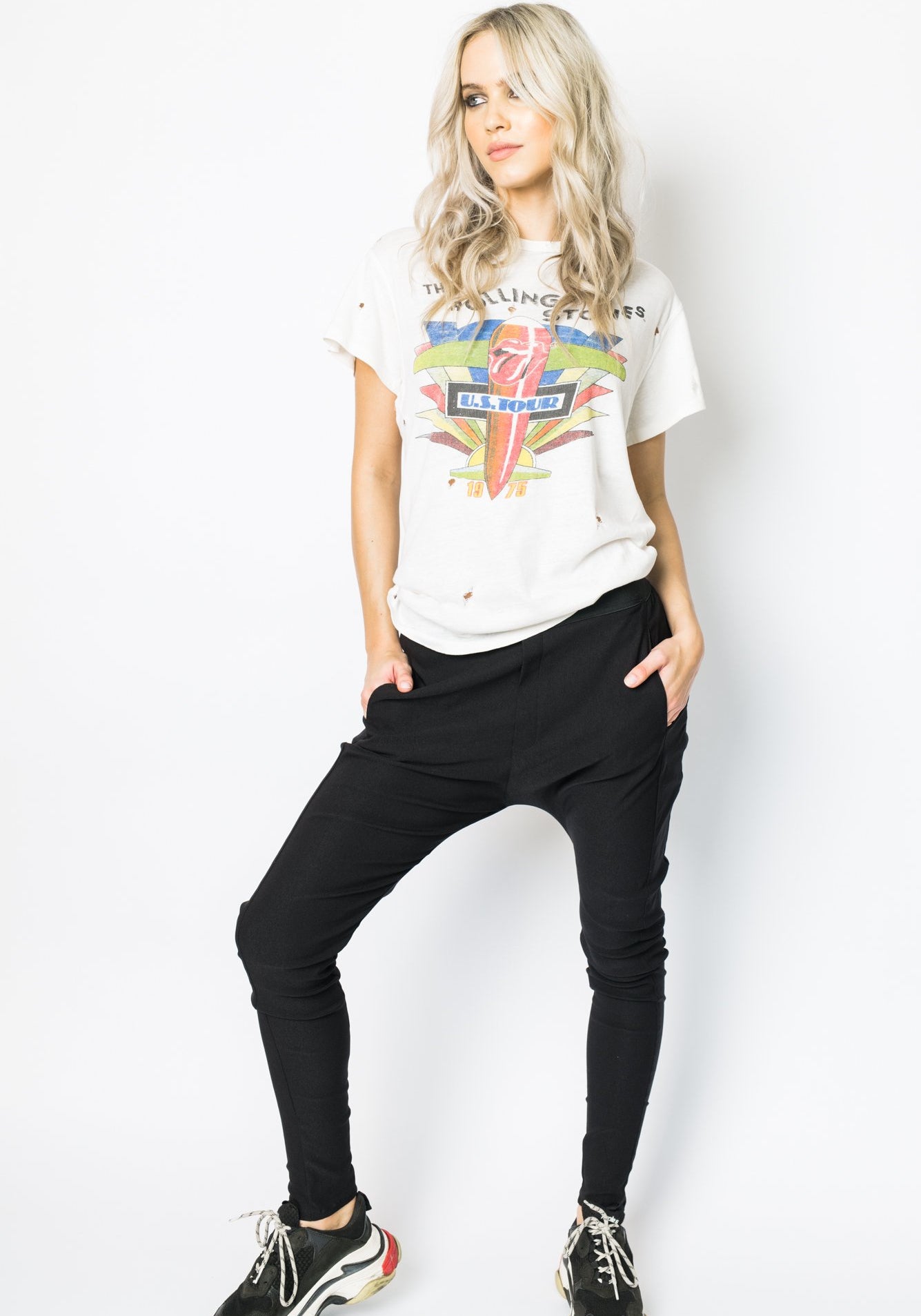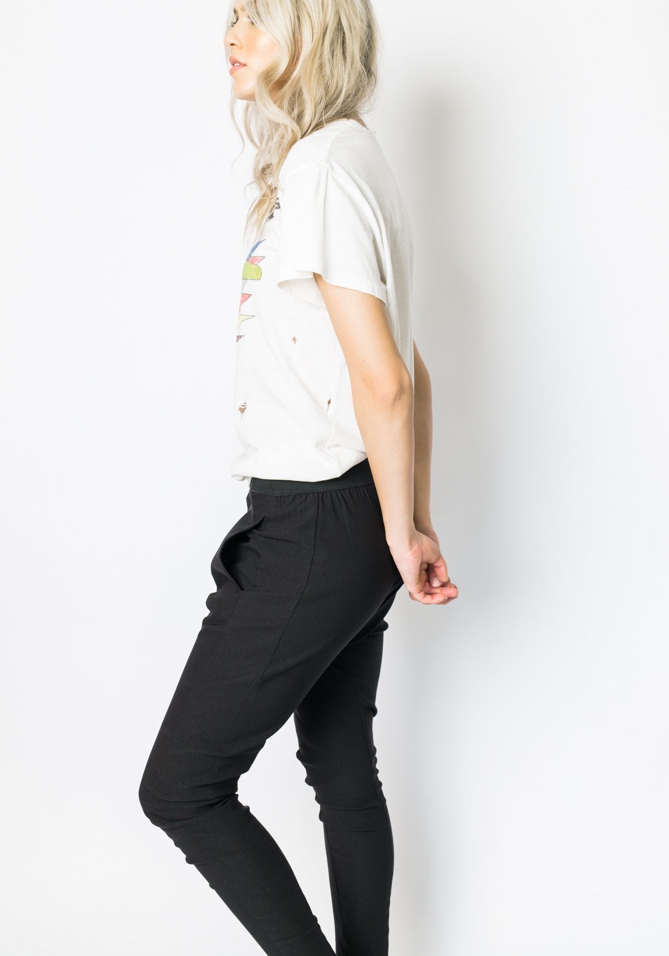 The Twill Trainer is a relaxed fit, pull-on stretch pant with a drop crotch that tapers into a slim leg. This easy fit, easy to wear pant features a soft Italian elastic waistband, faux fly and side pocket detail.